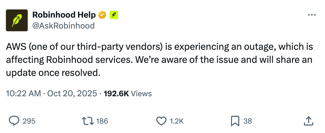 Некоторые компании, например Robinhood, публично обвинили AWS в том, что компания стала причиной сбоя.